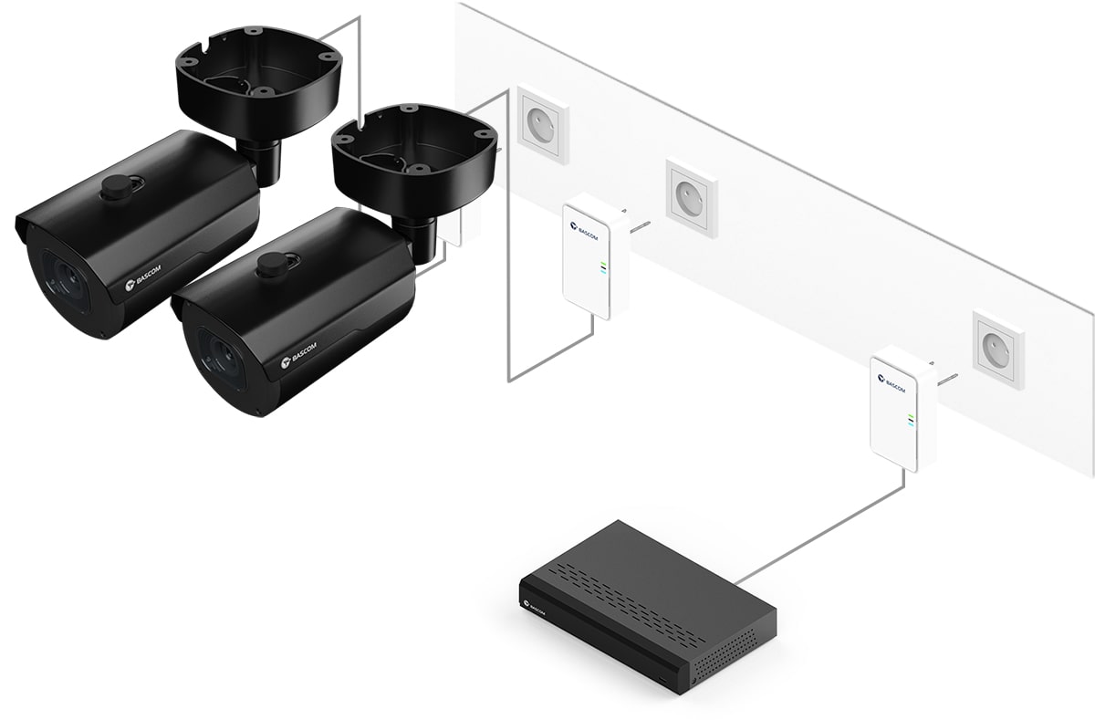 Ce système de vidéosurveillance est équipé de Bascom® POWER, notre technologie révolutionnaire qui transmet les images via le réseau électrique. Il vous suffit de brancher les caméras sur une prise de courant : elles se connectent automatiquement à l’enregistreur en utilisant vos câbles électriques existants. Vous bénéficiez ainsi de la fiabilité d’une connexion filaire, sans avoir à tirer de câbles vous-même.