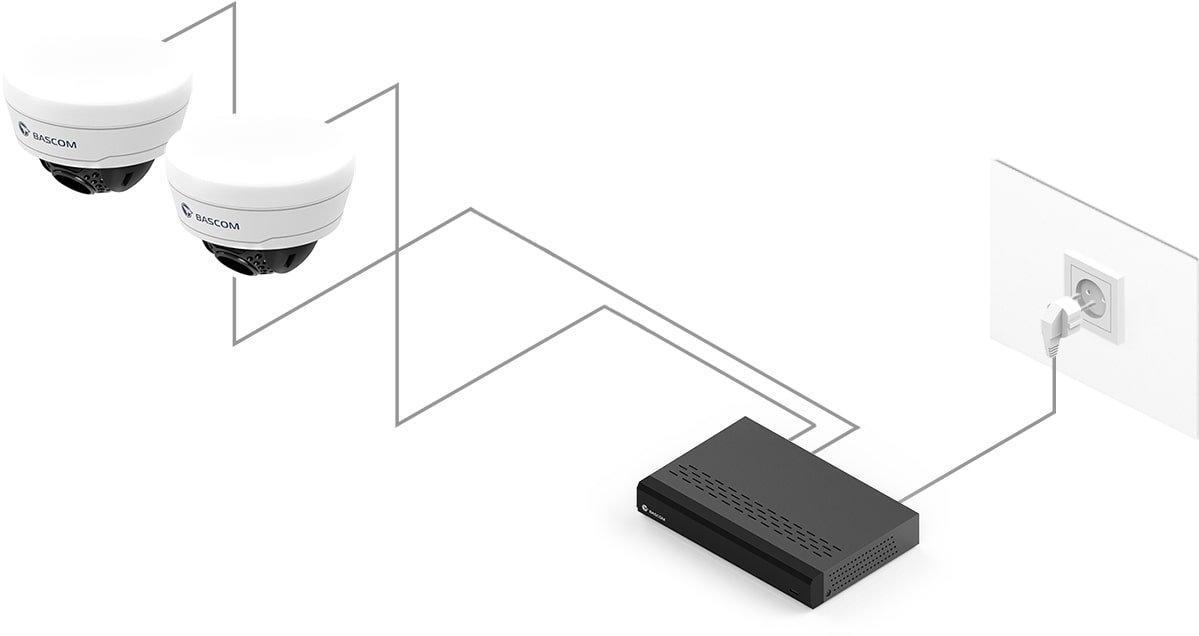 95 % de nos clients n’avaient jamais installé de système de vidéosurveillance auparavant, mais ont pu installer ce système Bascom eux-mêmes. Fixez les caméras au mur ou au plafond, branchez-les et le système fonctionne.
