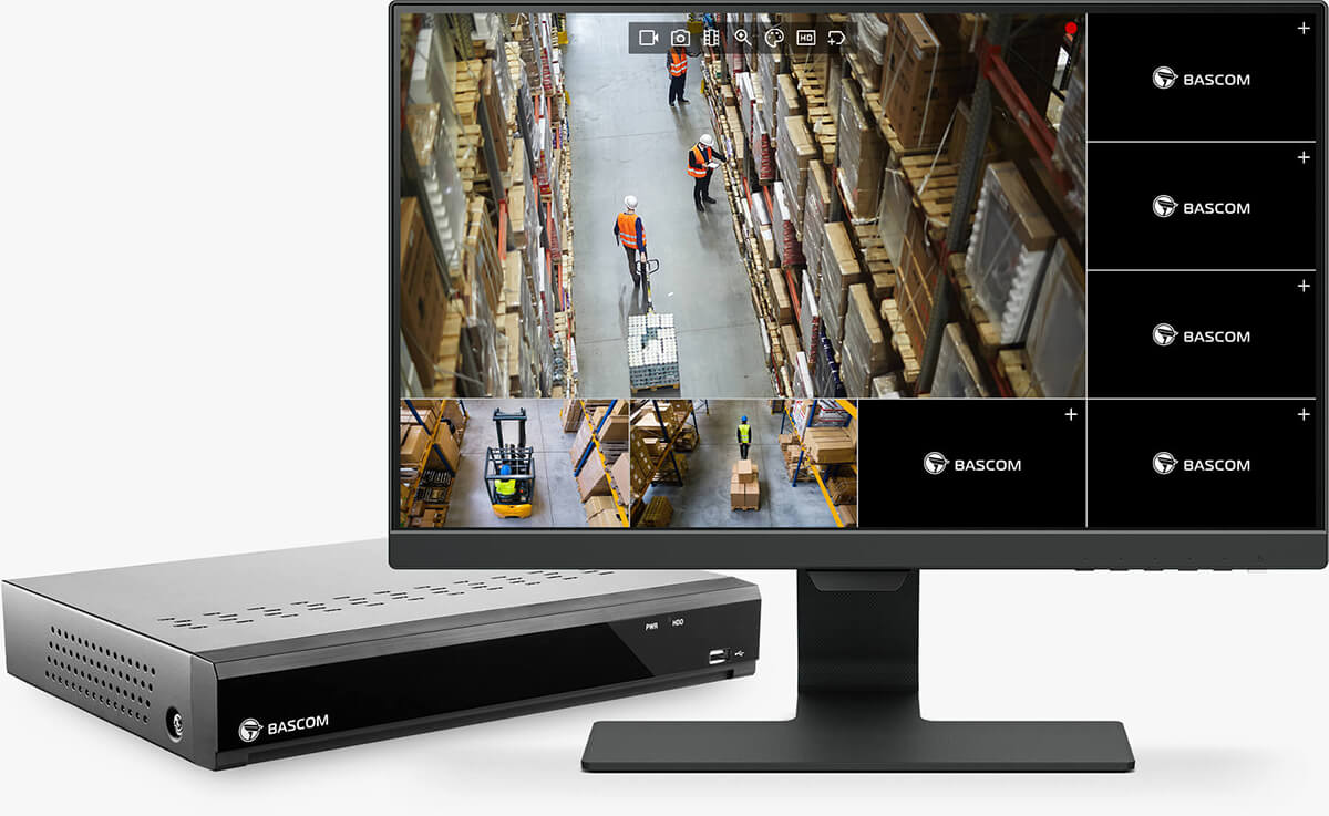 Ce moniteur est notre choix pour une utilisation avec un système de vidéosurveillance Bascom. Vous pouvez le connecter facilement à l'enregistreur avec le câble HDMI fourni. Ensuite, vous pouvez regarder en direct les images des caméras sans avoir à vous connecter à Internet. Vous contrôlez le système avec la souris fournie avec l'enregistreur.