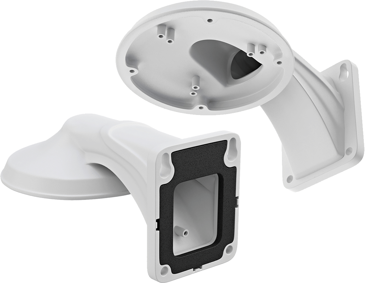 Une caméra dome peut être montée au plafond ou à plat contre le mur et peut être bien orientée dans les deux cas. Cependant, il est parfois préférable que la caméra soit légèrement éloignée du mur, par exemple pour regarder le long d'une gouttière ou d'un autre obstacle. Dans ce cas, un support mural offre une solution élégante.