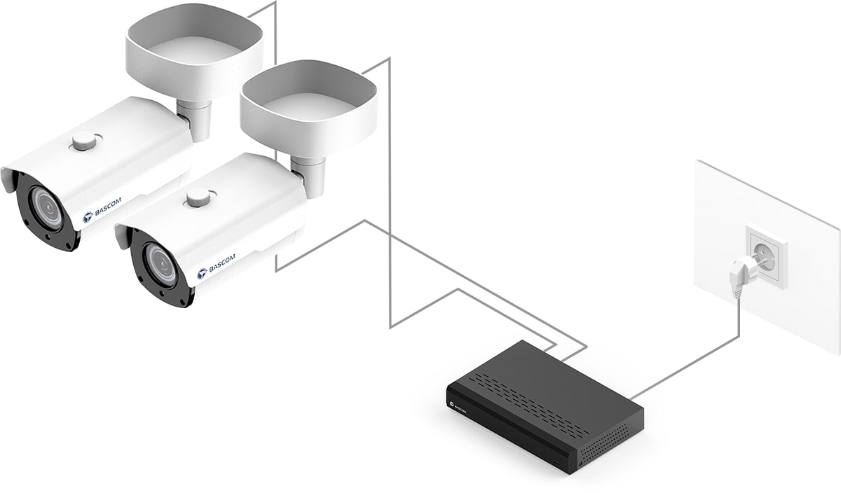 95 % de nos clients n’avaient jamais installé de système de vidéosurveillance auparavant, mais ont pu installer ce système Bascom eux-mêmes. Fixez les caméras au mur ou au plafond, branchez-les et le système fonctionne.