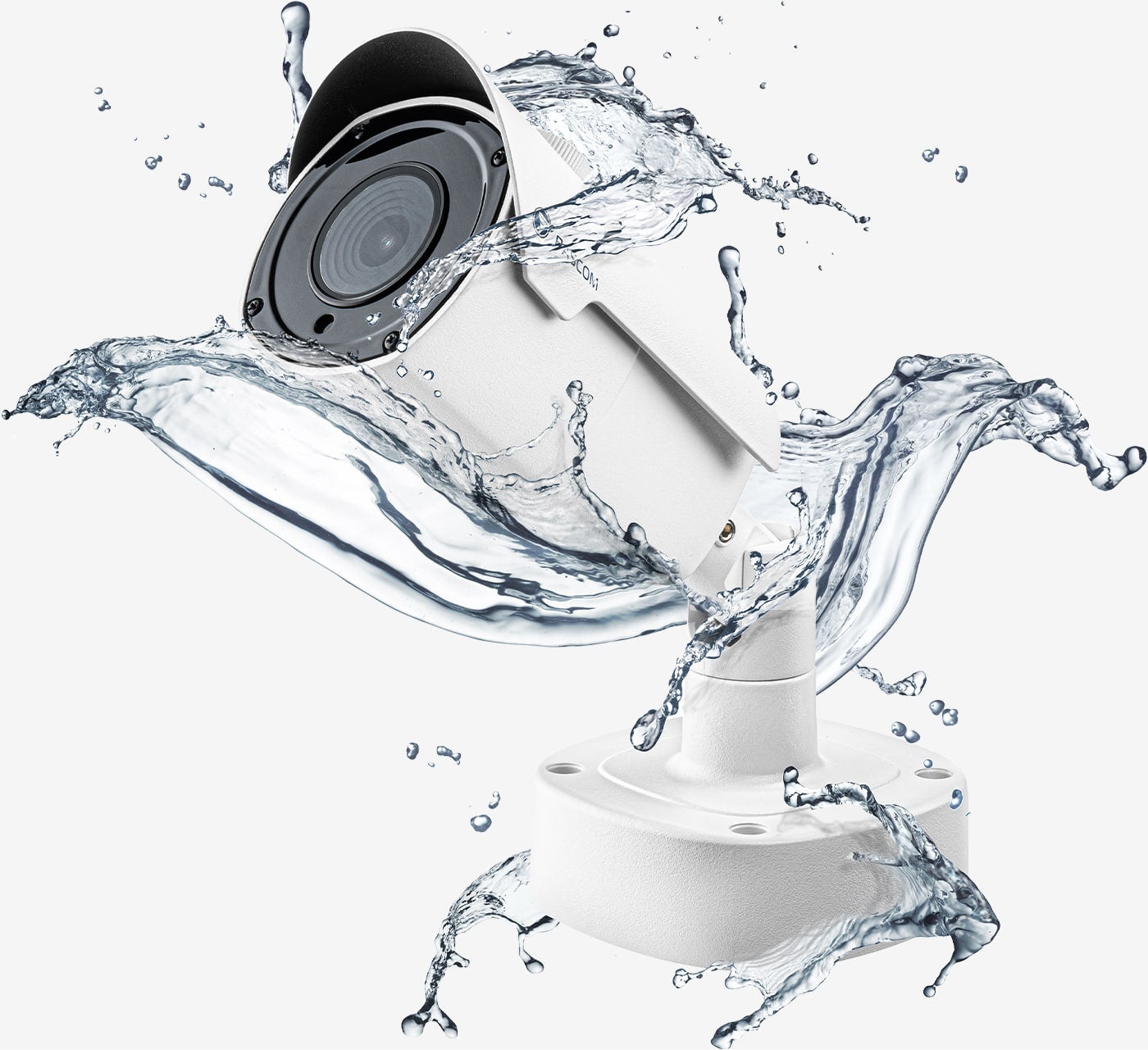 Les caméras Bascom sont étanches (certification IP67) et résistantes à toutes les conditions climatiques. Elles conviennent donc parfaitement à un usage intérieur comme extérieur. Leur boîtier robuste est fabriqué en aluminium trempé et protégé par un revêtement en poudre de haute qualité. Cela les rend résistantes à la corrosion et à l’usure – un choix durable, conçu pour durer de nombreuses années.