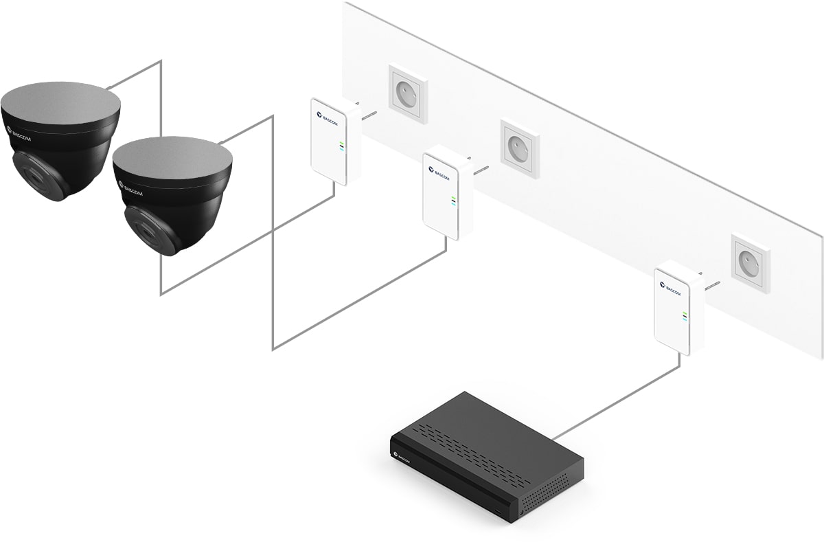 Ce système de vidéosurveillance est équipé de Bascom® POWER, notre technologie révolutionnaire qui transmet les images via le réseau électrique. Il vous suffit de brancher les caméras sur une prise de courant : elles se connectent automatiquement à l’enregistreur en utilisant vos câbles électriques existants. Vous bénéficiez ainsi de la fiabilité d’une connexion filaire, sans avoir à tirer de câbles vous-même.
